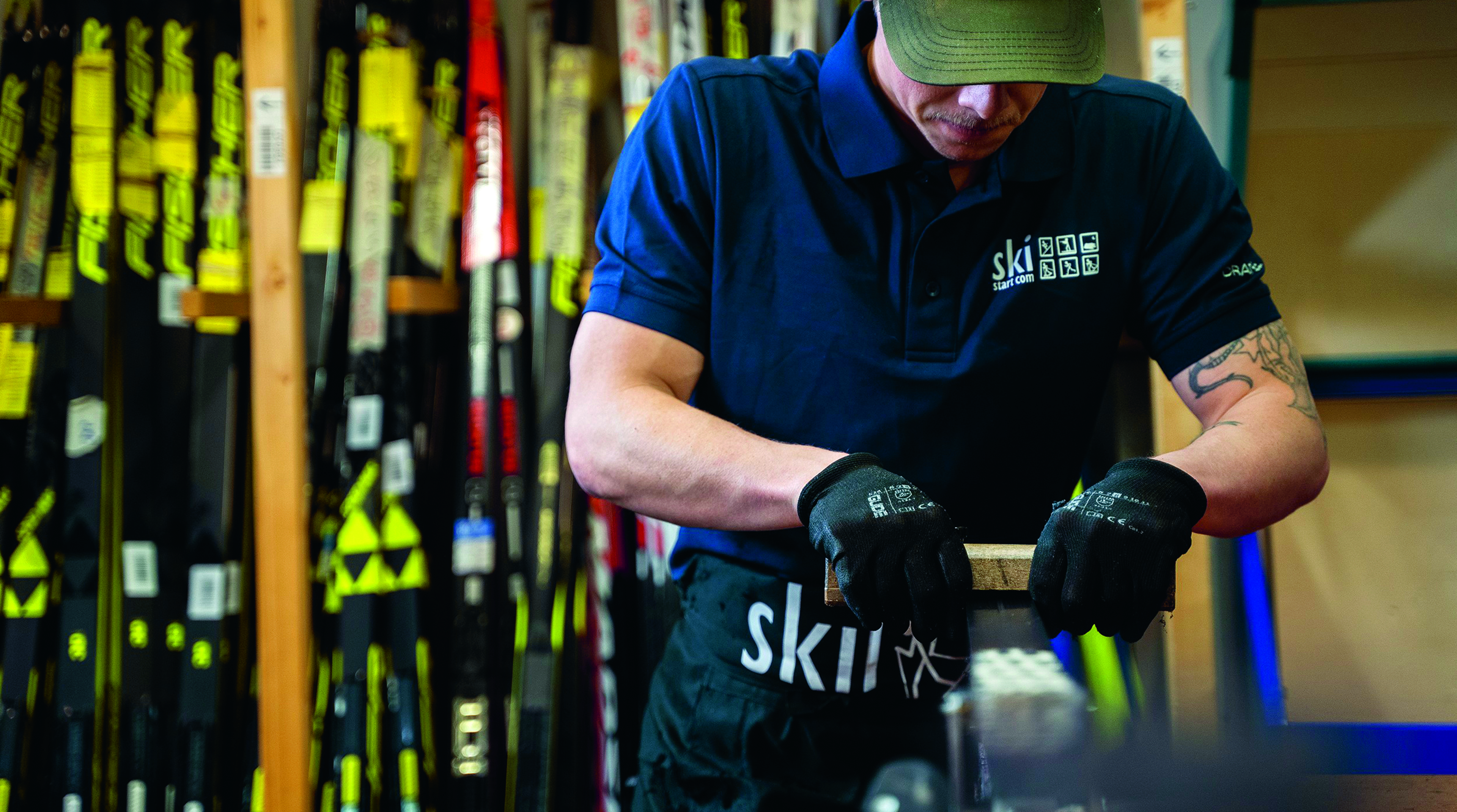 Skistart har en egen skidverkstad där de preparerar glid och fäste för kunderna samt säkrar att varje kund får en skida som passar. Allt för att kunna leverera den bästa längdskidåkningsupplevelsen.