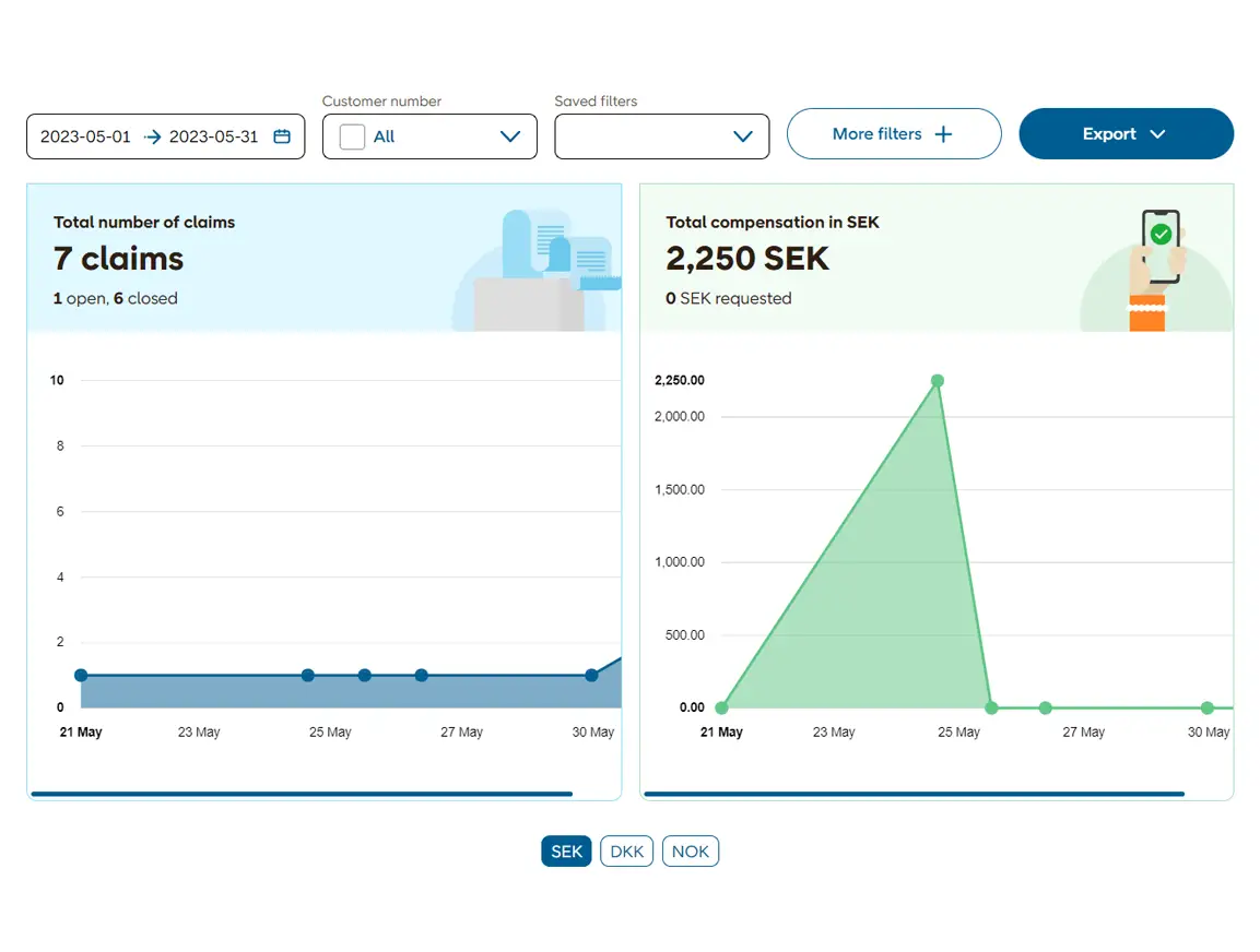 Optimera dina flöden med statisik och rapporter Se dina leveransers CO2-utsläpp, upptäck onödiga utgifter, följ upp dina kunders leveransupplevelse. Utveckla din affär med våra statistikverktyg.